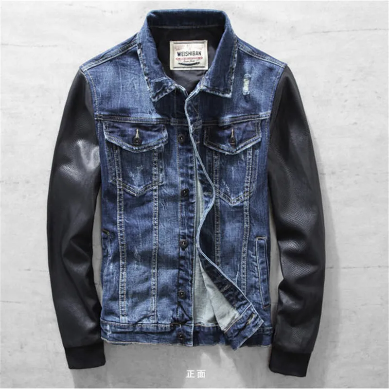 Online Kaufen Großhandel Jeansjacke Lederärmel Herren Aus