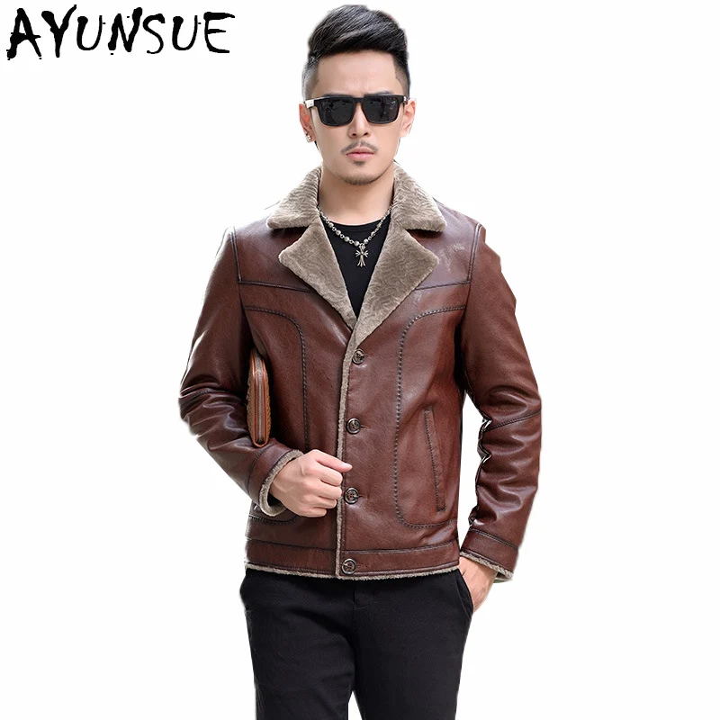AYUNSUE High Quality New 2018 100% Wool Fur Fauxt Leather