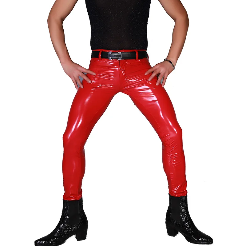 Sexy Men Tight Faux Leather Zipper Front Fashion Glossy