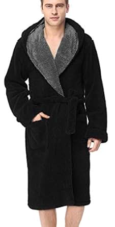 Terry Cloth Robes Men flychen mens robe hooded plush long soft thick fleece