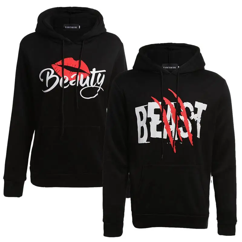 BEAST BEAUTY Graphic Print Couple Men Hoodies Black Hooded