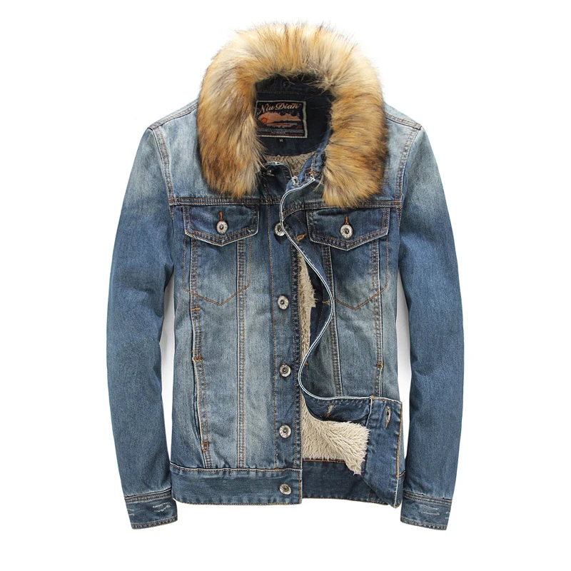 Hot Sale Winter Mens Plus Velvet Cotton Denim Jacket Male