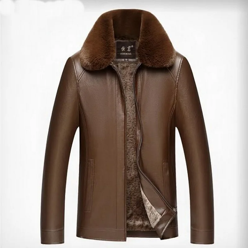 2018 New Men Leather Jacket Fashion Brand Quality Fleece