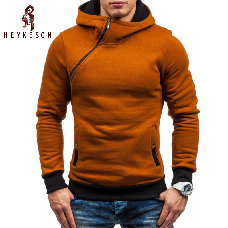 No description available.HEYKESON Brand 2018 Hoodie Oblique Zipper Solid Color