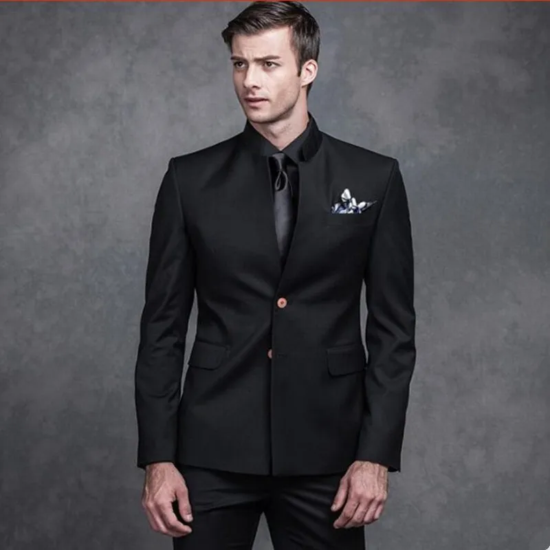 2018 Latest Designs Bruce Lee Style Black Groom Mens Suit