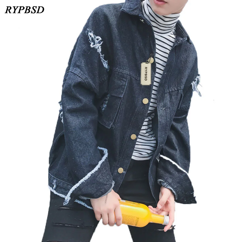 Autumn New 2019 Hole Black Blue Denim Jacket Men