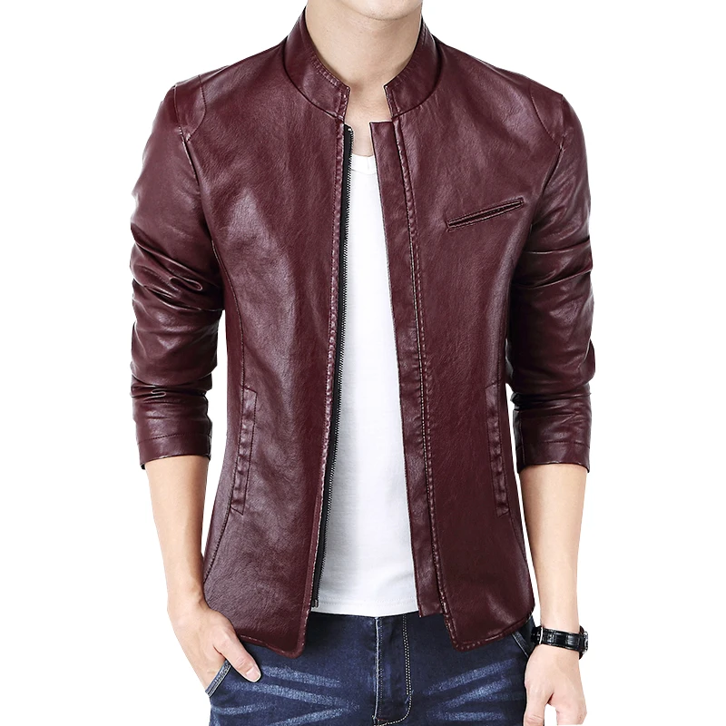 mens slim fit asymmetrical black zipper leather jacketNew Brand Men's Jackets PU Leather Jacket Punk Red Leather